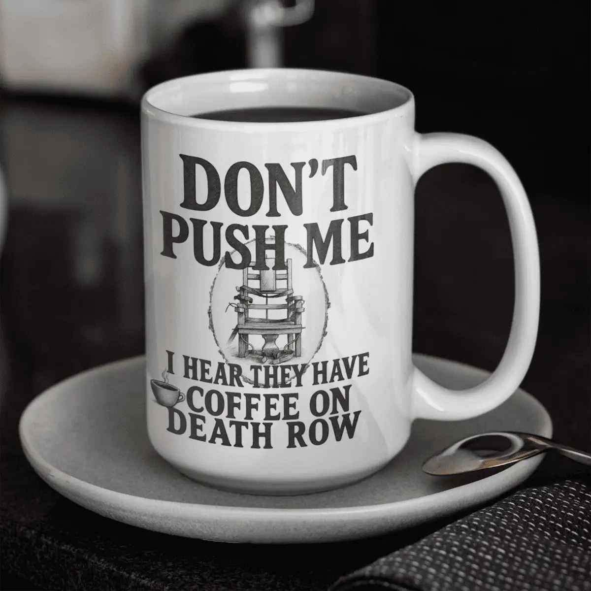 “DON’T PUSH ME — I HEAR THEY HAVE COFFEE ON DEATH ROW.”