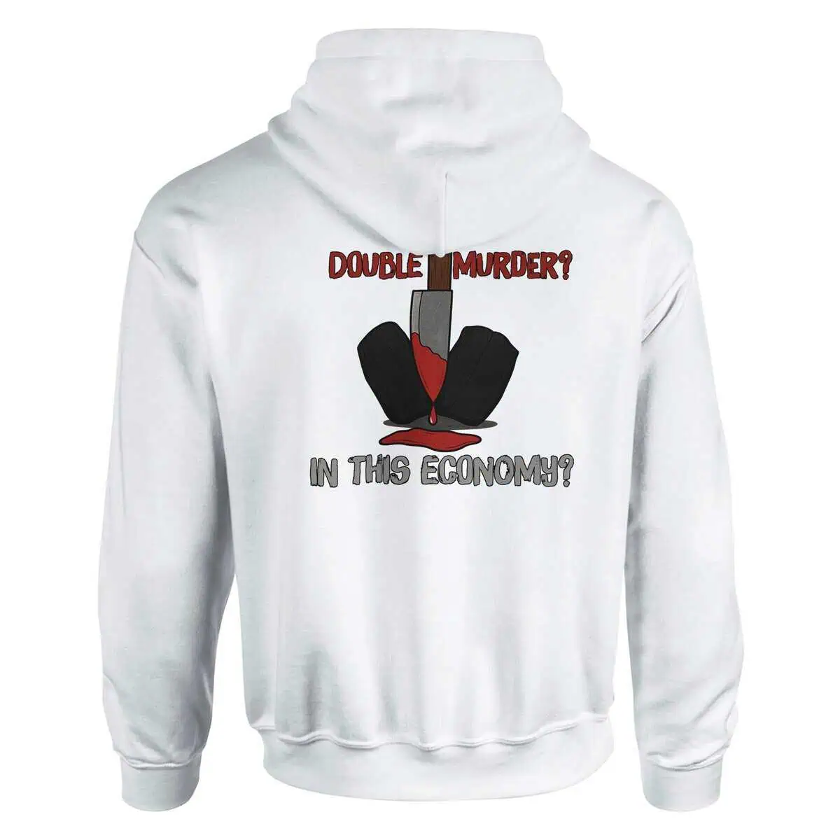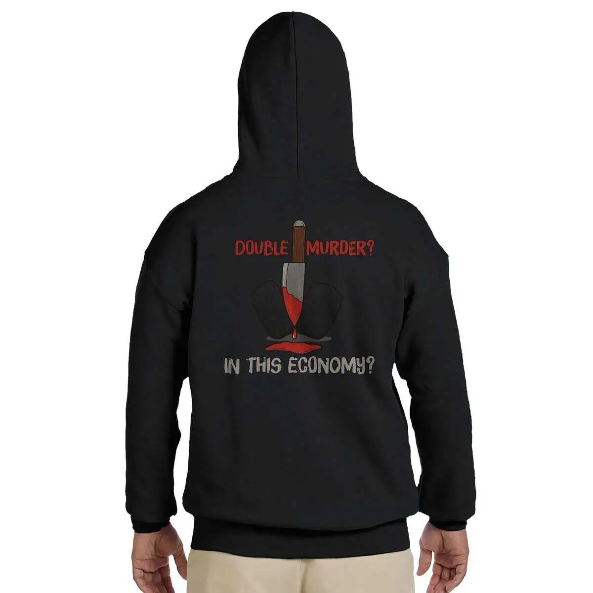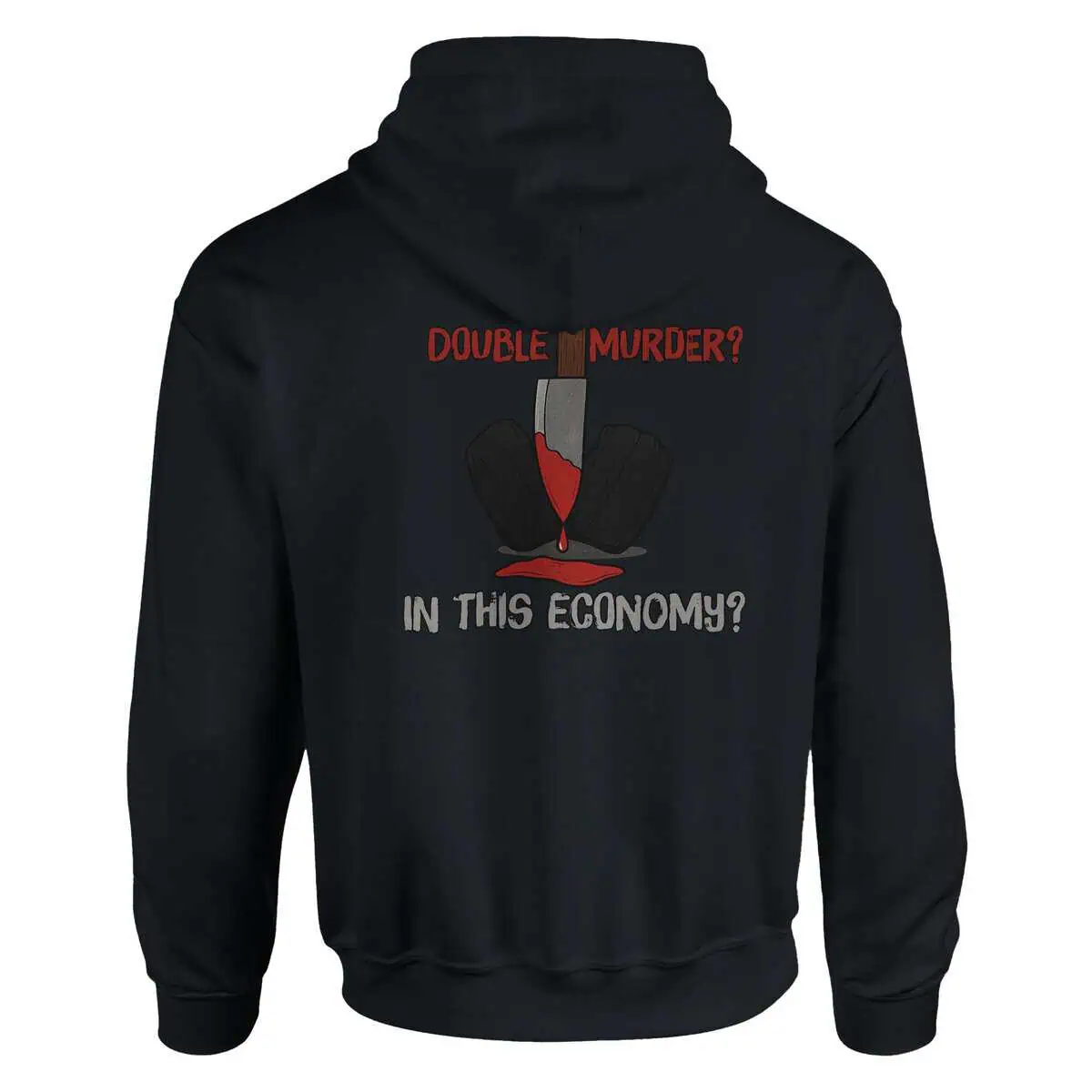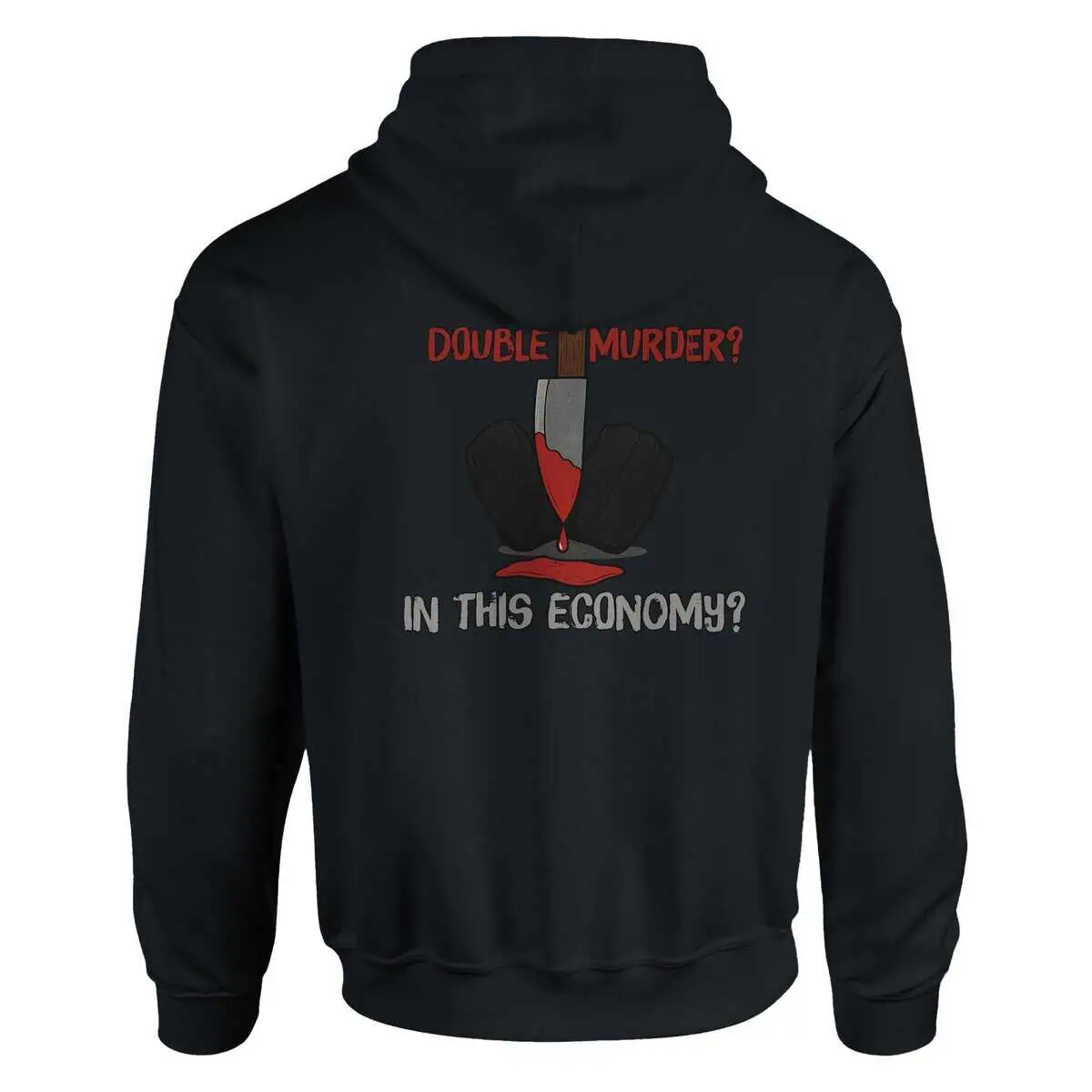 Featuring the bold, comical phrase “Double Murder? In This Economy?”, this heavyweight hoodie leans into true crime wit with a satirical nod to the hard times plaguing our fellow humans. It’s the kind of true crime hoodie that makes people laugh, look twice, and maybe ask where you got it.