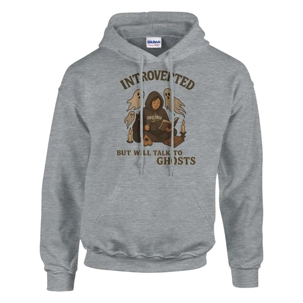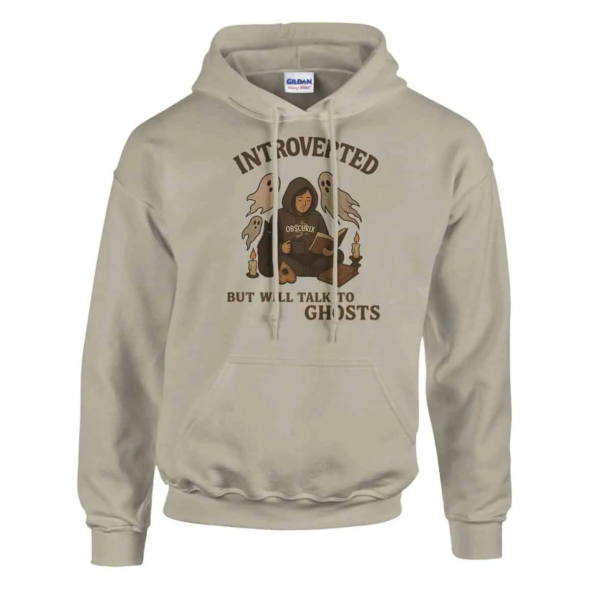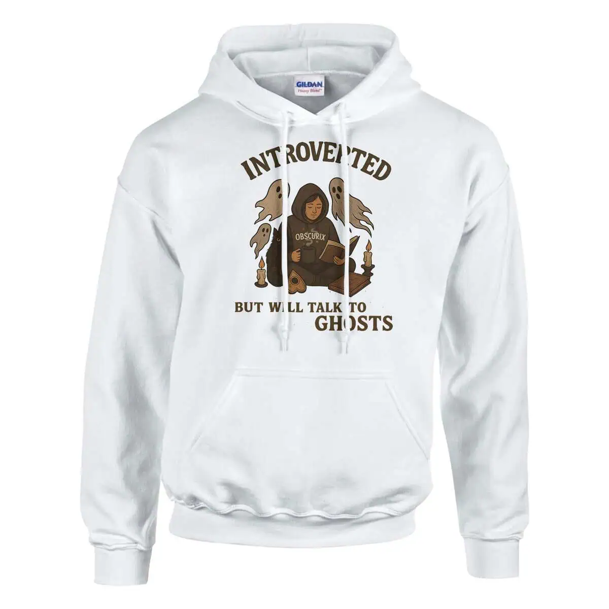 This cozy unisex hoodie is made for introverts who’d rather chat with ghosts than people. Featuring a witchy design with a black cat, haunted book, planchette, and floating spirits, it’s perfect for ghost hunters, spiritual weirdos, and cozy goths alike.