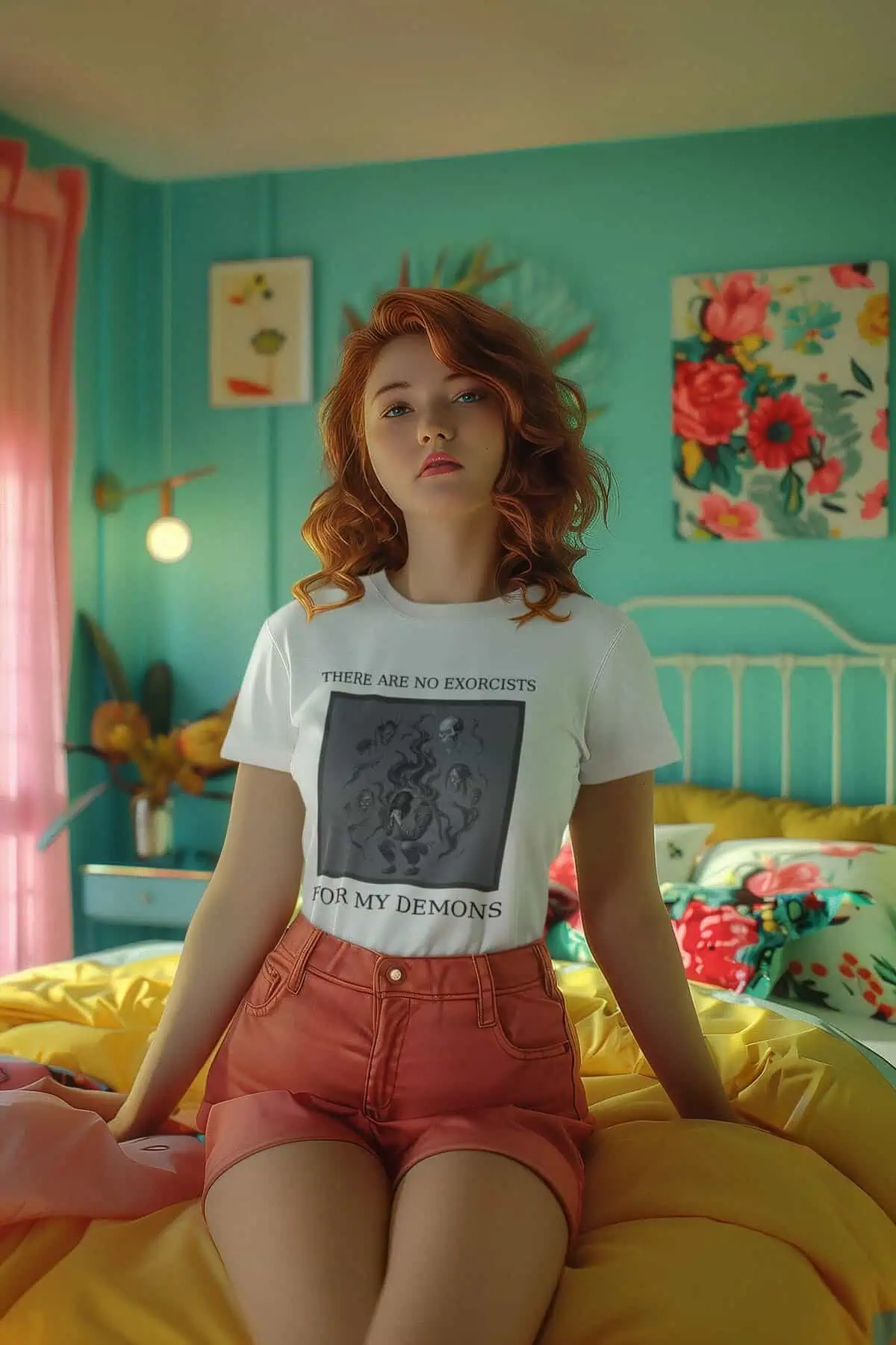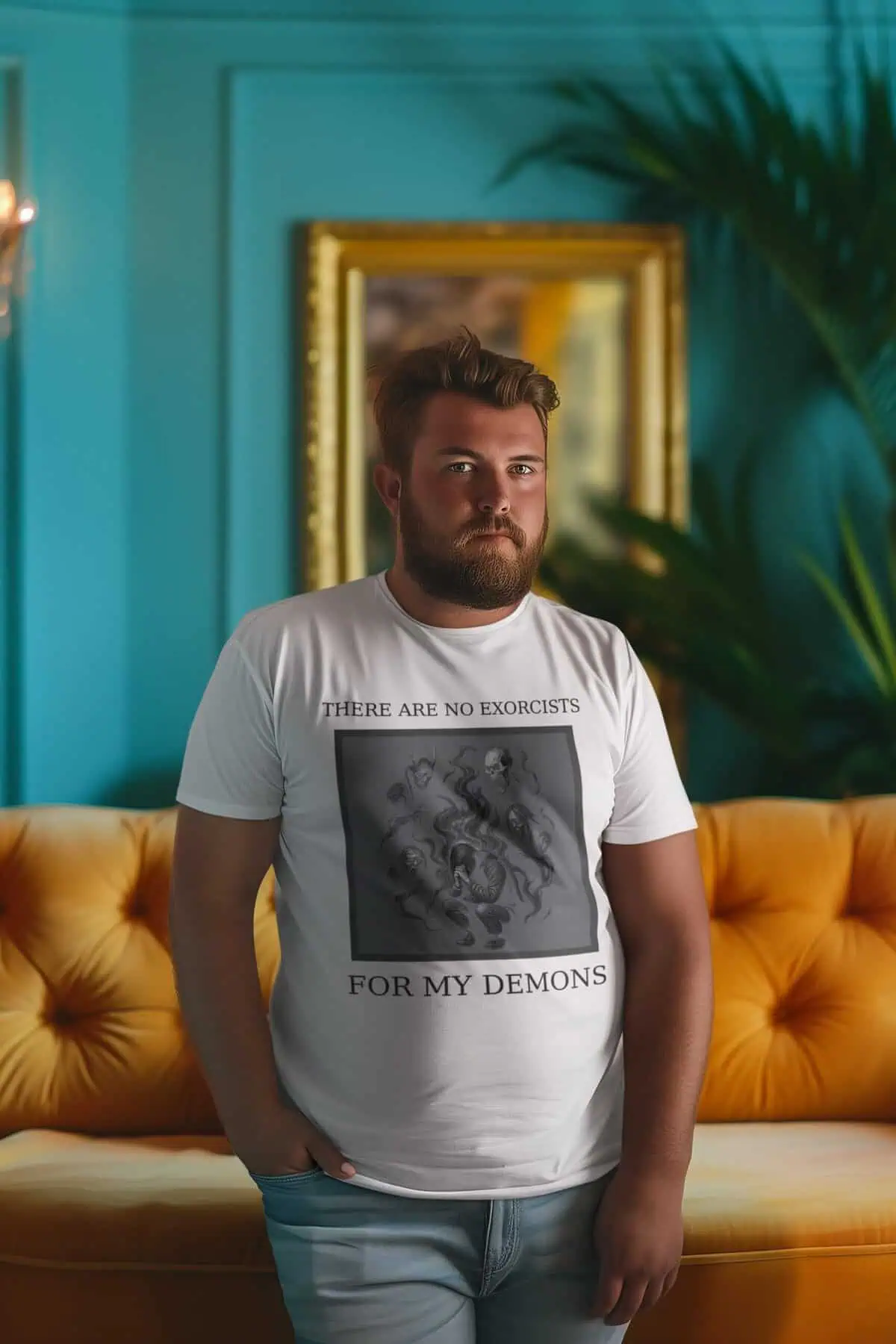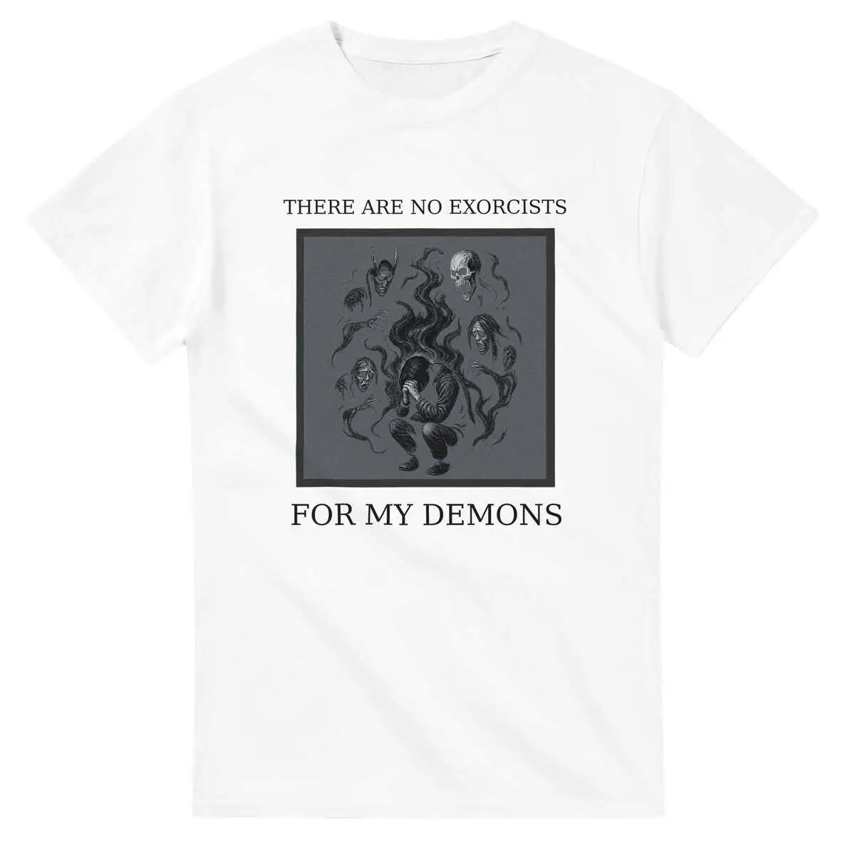 Featuring a slouched, haunted figure and ghostlike forms rising like smoke, the No Exorcists For My Demons design reminds us that not all battles can be banished so easily. Some of our struggles take a little more, and others, we just have to live with.