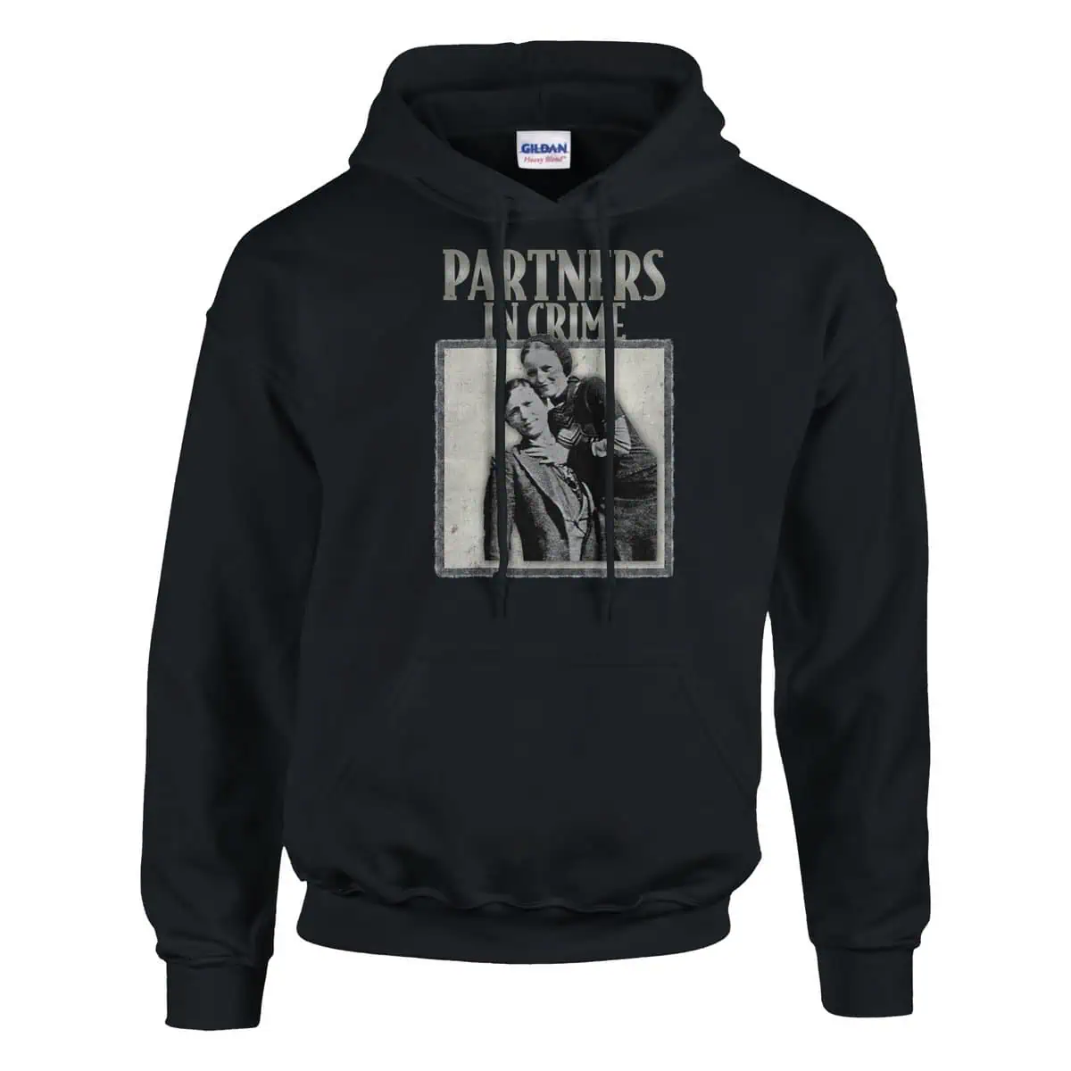 This Partners in Crime hoodie is made for rebel hearts and dark history fans alike. Featuring a gritty vintage-style photo of a criminal couple (evoking the Bonnie and Clyde aesthetic), it’s perfect for your partner in chaos — or your solo outlaw vibe.