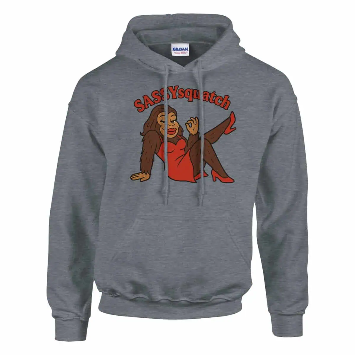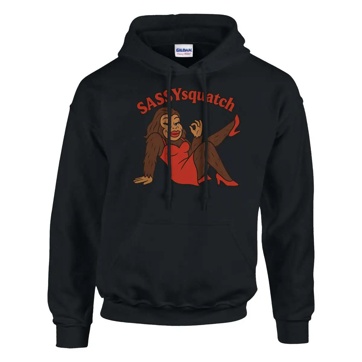 This retro pinup-style Sasquatch in heels is serving cryptid couture. Whether you’re into mysterious creatures, paranormal sass, or just want to turn heads at your next Bigfoot hunt—this hoodie is the perfect blend of weird and wearable.