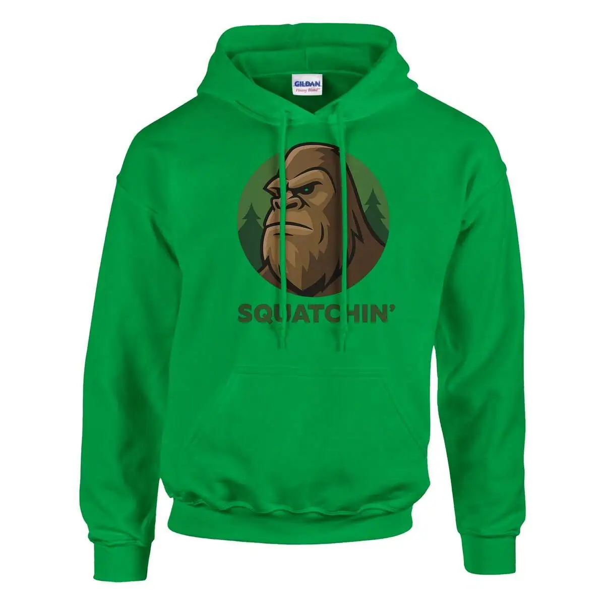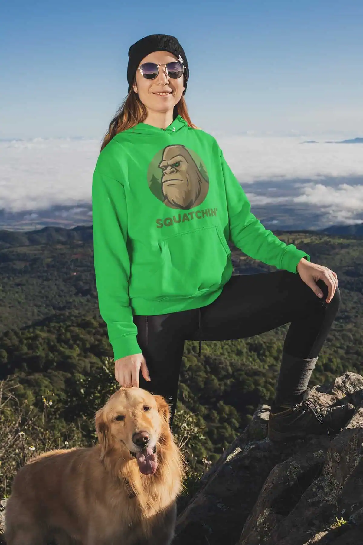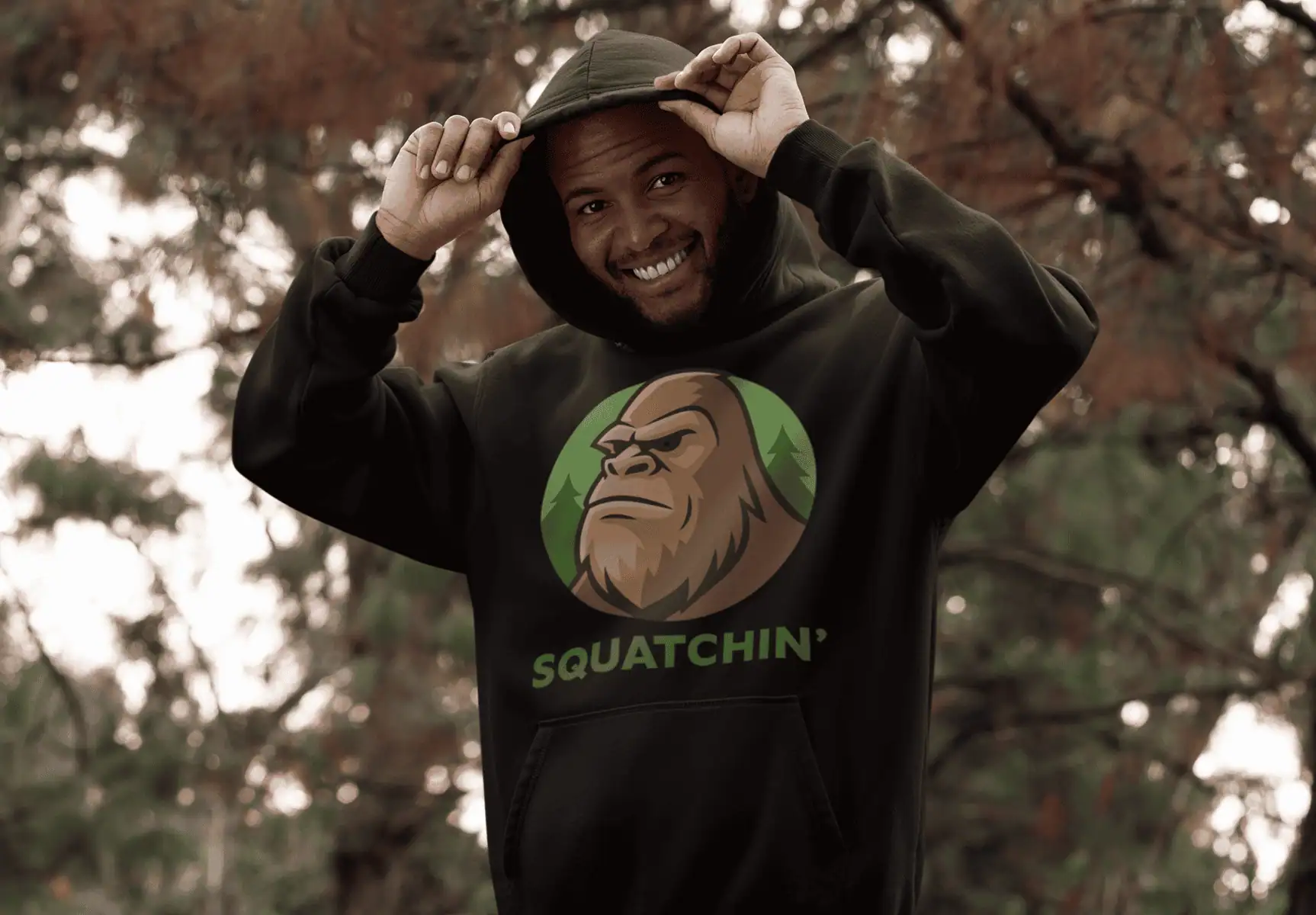 Whether you’re an amateur squatcher, a die-hard cryptid hunter, or shopping for the perfect gift for a Bigfoot believer, this hoodie keeps you warm and weird. The bold cartoon design features a stylized Sasquatch in shades with a retro forest backdrop and the word “Squatchin’” front and center — because, let’s be honest, you’re always squatchin’.