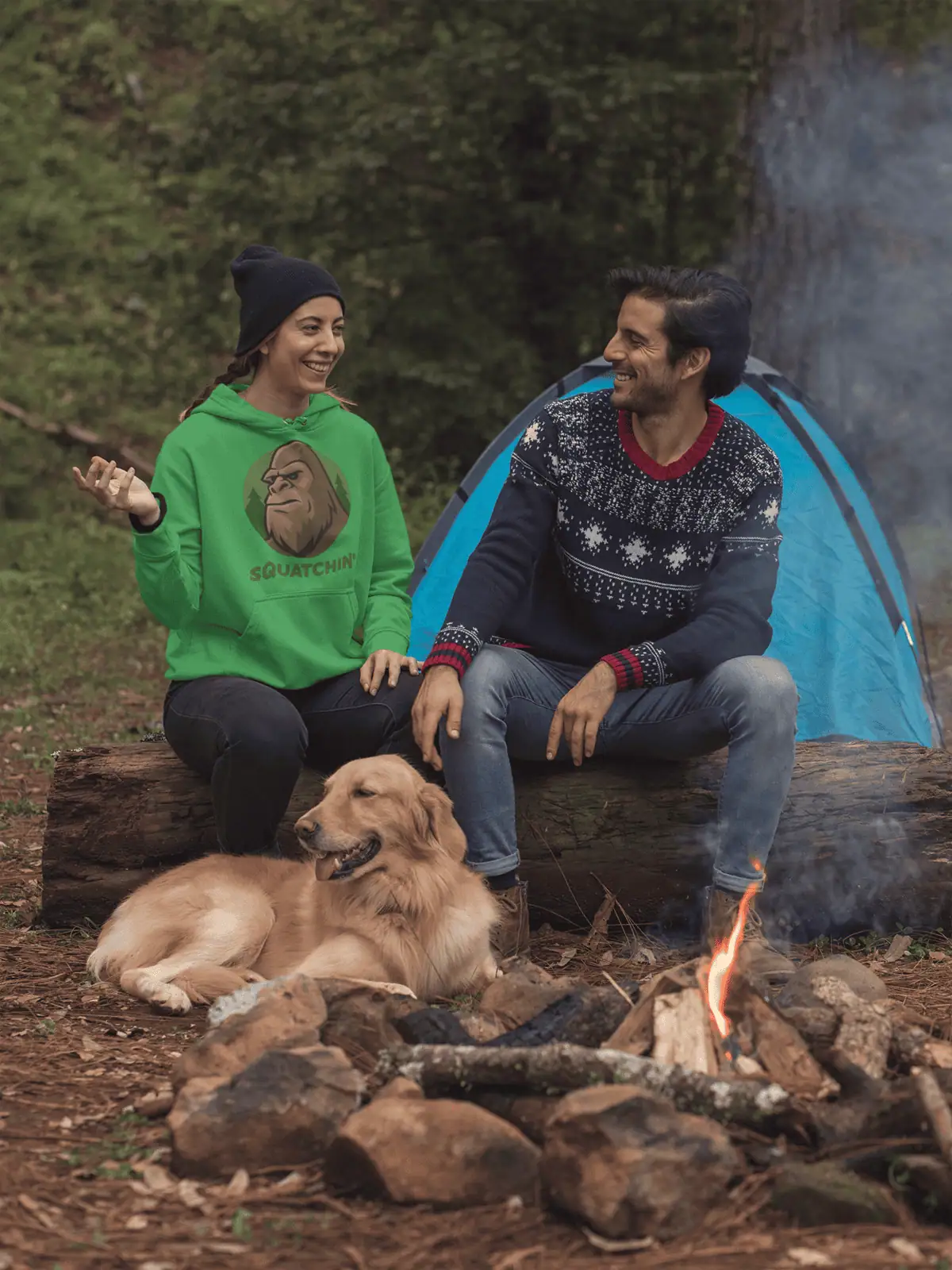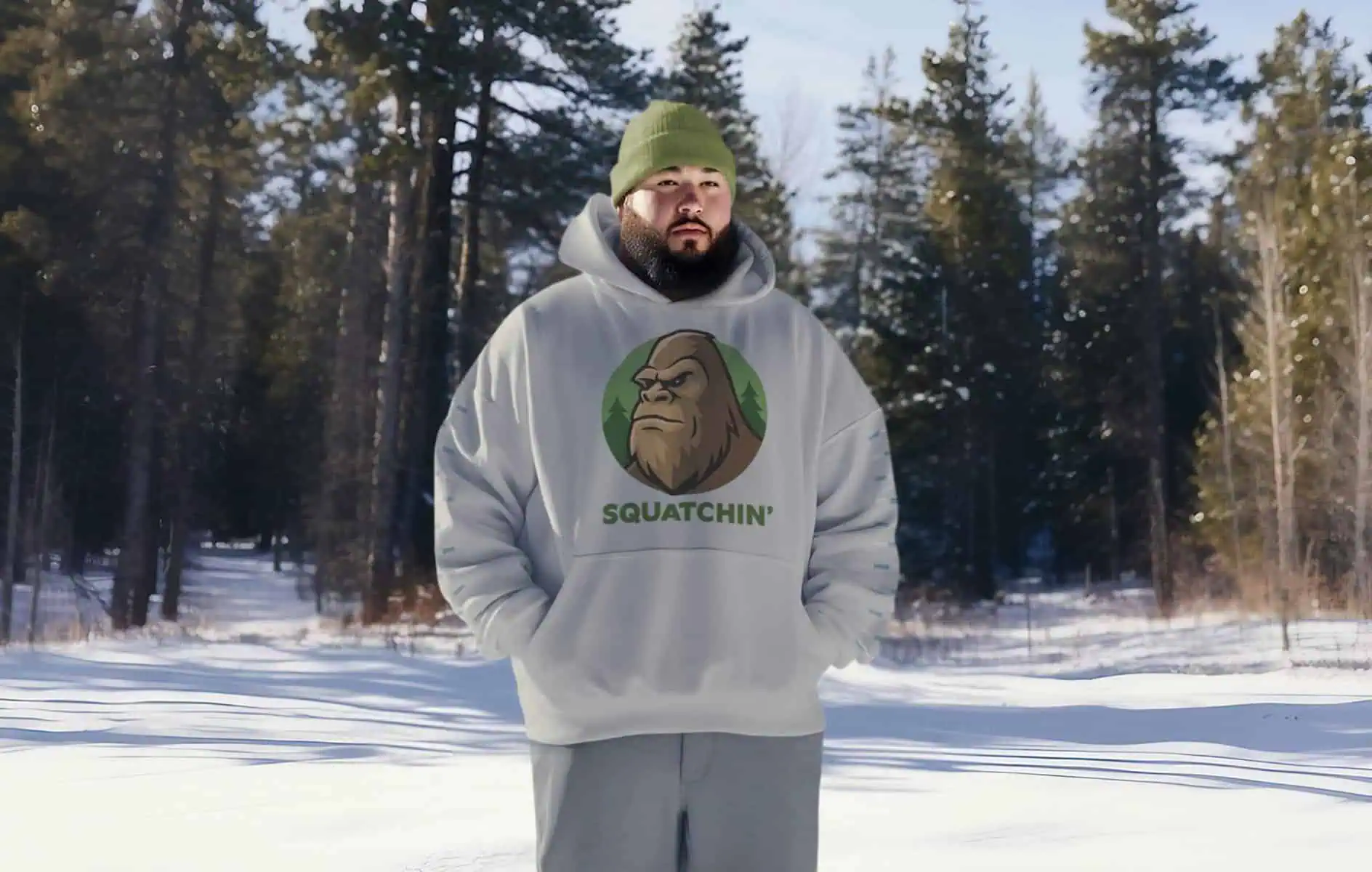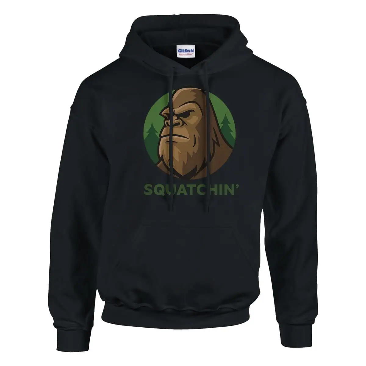 Whether you’re an amateur squatcher, a die-hard cryptid hunter, or shopping for the perfect gift for a Bigfoot believer, this hoodie keeps you warm and weird. The bold cartoon design features a stylized Sasquatch in shades with a retro forest backdrop and the word “Squatchin’” front and center — because, let’s be honest, you’re always squatchin’.