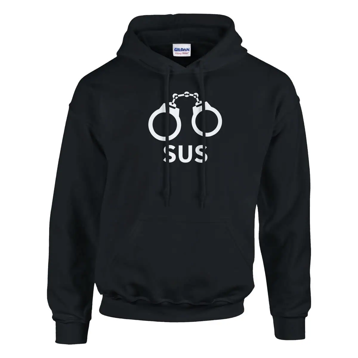 Perfect for true crime fans, armchair detectives, or anyone who loves a little dark humor with their wardrobe. Featuring bold handcuffs and the word “SUS” in clean, striking typography, this hoodie pairs effortlessly with sarcasm and suspicion.