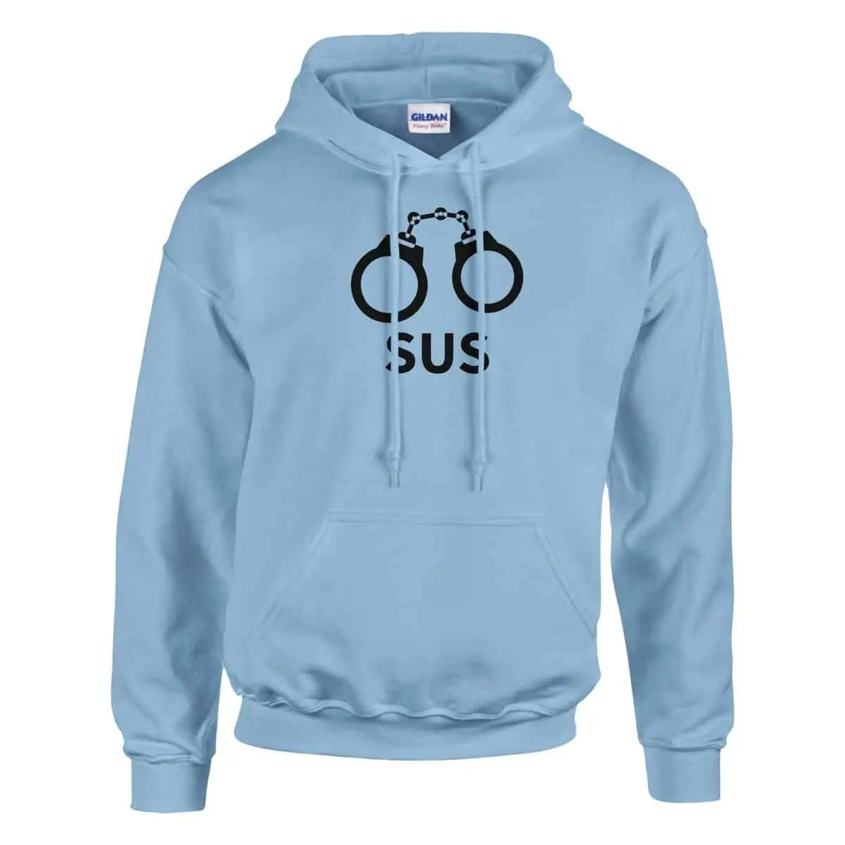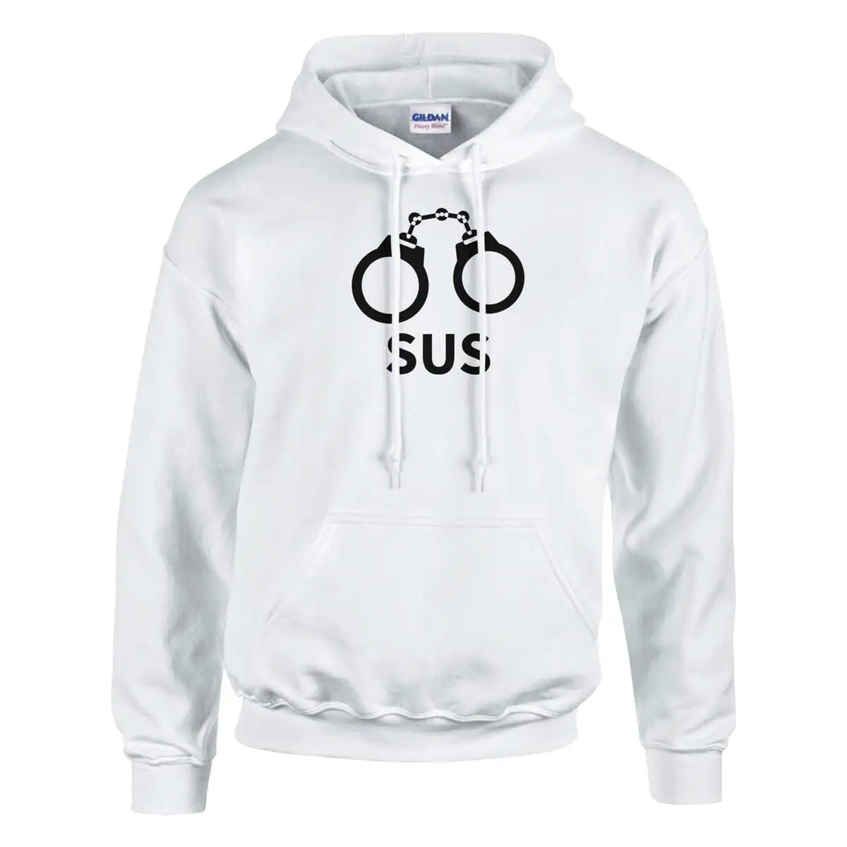 Simple, bold, and a little shady — this hoodie features a crisp handcuff graphic paired with the word “SUS” in clean block lettering. Whether you’re a true crime junkie, an armchair detective, or just naturally suspicious, this one’s for you.