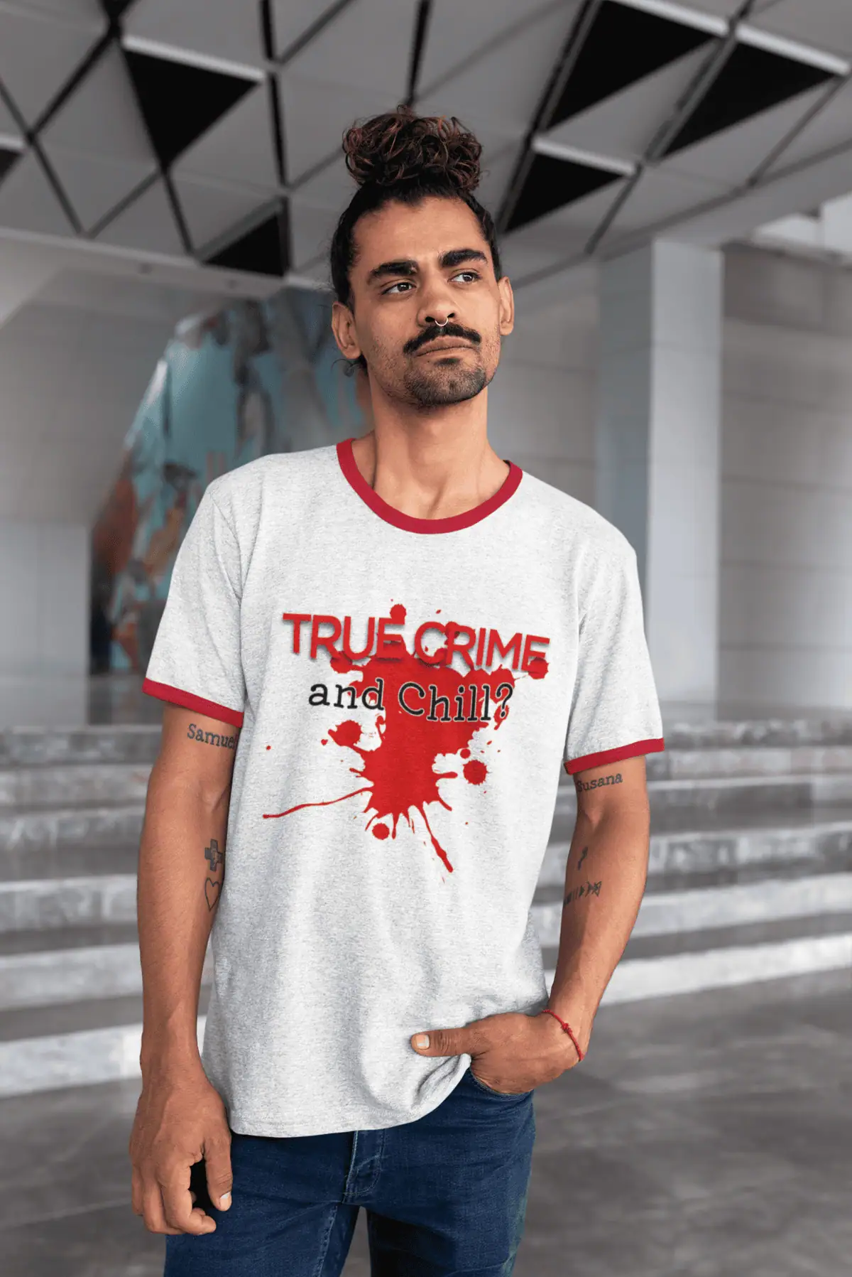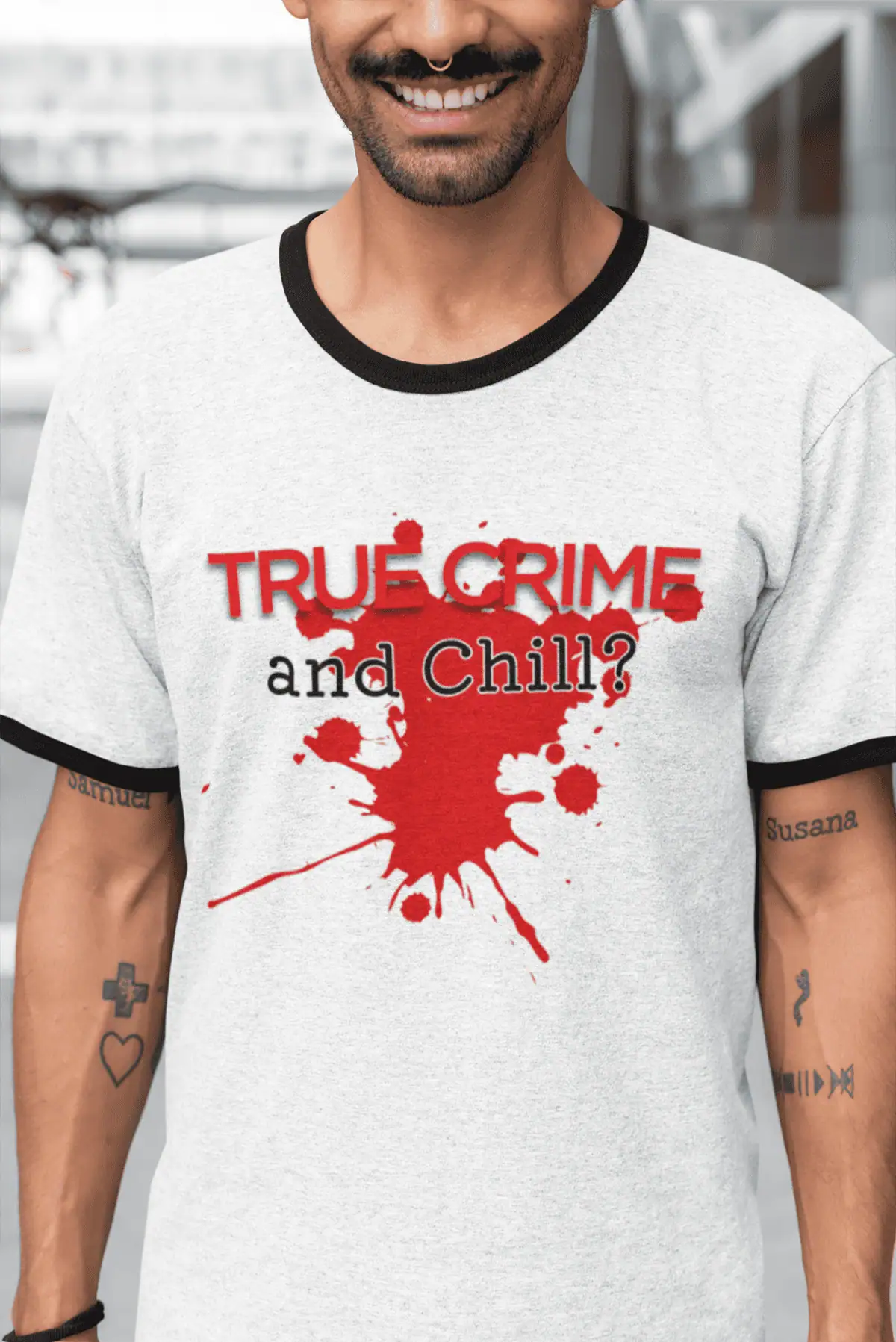 Give your true crime obsession a vintage twist with this bold and stylish “True Crime and Chill?” ringer tee. With its contrasting collar and sleeve detail, this shirt brings back retro vibes while delivering a modern fit that flatters all genders.